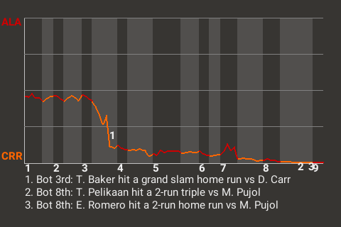 Ballpark: The Cocoon Weather: Partly Cloudy (64 degrees), wind blowing out to left at 11 mph Start Time: 7:05 PM CT Time: 2:30 Attendance: 5571 |