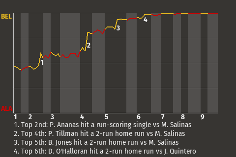 The game was at a stalemate until third baseman Gerald Cooper came to bat in the top of the eighth. Facing Alaskan pitcher Sergio Delgado, he hit a 1-1 cutter for a run-scoring single. It was a game-changer, putting Delmarva on top, 4-3.