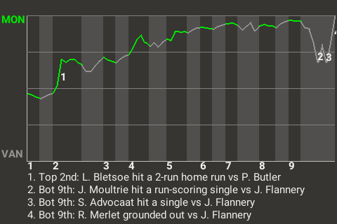 Louis Bletsoe cracked a home run off Pat Butler in the top of the second. His 2-run blast put the Pandas on top, 2-0. In all, Bletsoe had 1 single in addition to the home run, while going 2 for 4.