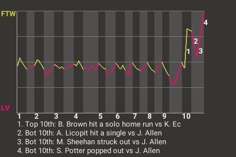 The Ft. Worth Cattlemen faced a tough opponent in Las Vegas pitcher Gilberto Malfeito, but did just enough to pull out the victory at The Strip by a final score of 1-0. Malfeito went 9 innings and allowed no runs. Getting the save was John Allen, his 2nd. After losing, Las Vegas is 2-5.