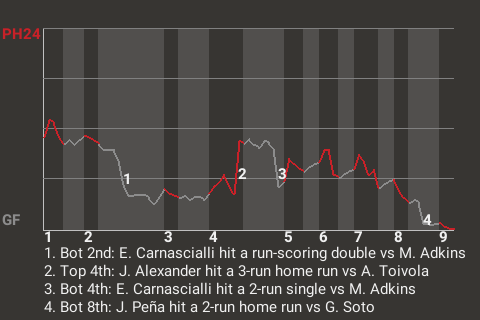 (4, 8th Inning off D. Hockey, 0 on, 2 outs)