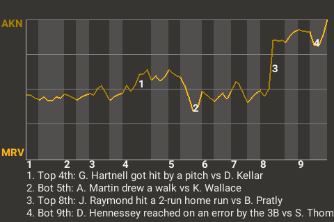 Charlie Lawson's at-bat with no one out in the top of the eighth was critical. The Alaskan designated hitter drew a walk, driving in 1 run, to put his team on top, 1-0. Runs were at a premium and this one was huge.