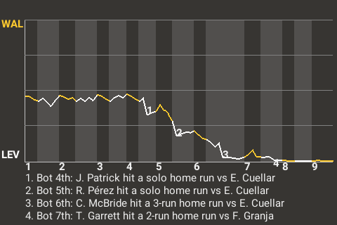 2 (8, 5th Inning off F. Morán, 0 on, 1 out; 10th Inning off J. Parker, 2 on, 1 out)