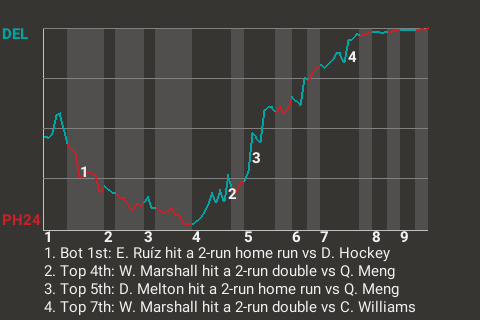 2 (9, 4th Inning off B. Heath, 0 on, 0 outs; 9th Inning off M. Walker, 0 on, 2 outs)