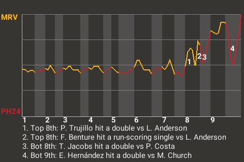 a - P. Trujillo pinch hit for K. Quesada in the 8th