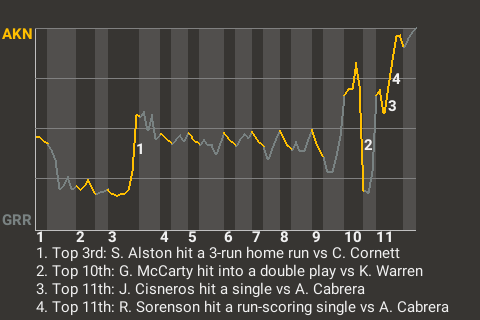 e - R. Sorenson pinch hit for A. Heuvelink in the 11th
