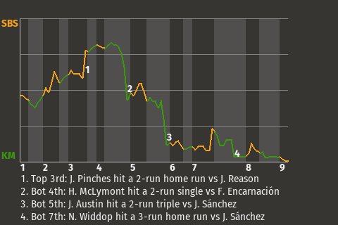 Jim Giles, who is tied for 5th in the SA in stolen bases with 7, chipped in a solo home run for Grim in the bottom of the fifth. For the game, the shortstop had 2 hits in 4 at-bats with 1 home run, 1 single, 1 run scored, and 1 RBI.