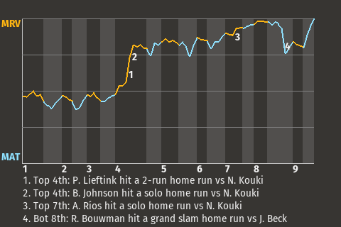 a - M. Chaundler pinch ran for E. Karakai in the 8th
