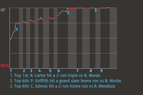 Early in the game, shortstop Elías Carnascialli had a bases-clearing double for Grand Forks. It was his 4th double of the season and put the Caterpillars on top, 3-1.