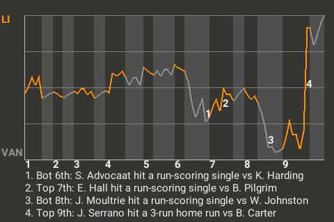 Jesús Serrano came through with a big-time hit for Long Island. The first baseman smacked a 3-run home run in the top of the ninth inning to give his team the lead, 6-4. It was his only hit, but it was clutch.
