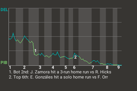 2 (3, 2nd Inning off M. López, 0 on, 1 out; 7th Inning off W. Hughes, 0 on, 1 out)