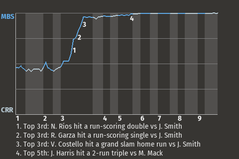 2 (2, 2nd Inning off P. Valentín, 0 on, 0 outs; 8th Inning off G. Dunn, 0 on, 2 outs)