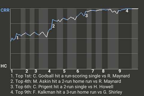 RP Sterling Reece was injured while pitching. Bob Rogers ties the HC regular season extra-inning game record for runs with 4.
