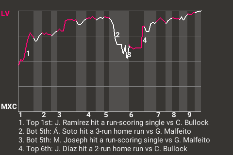 Díaz had a big hit for Las Vegas with two out in the top of the sixth. With Las Vegas leading 5-4, Díaz hit a 2-run home run. It was his 1st home run of the season and put the Flamingos up, 7-4.