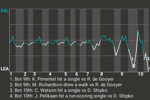2 (6, 2nd Inning off A. Lalima, 0 on, 2 outs; 8th Inning off S. Ellis, 3 on, 1 out)