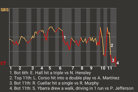 (6, 11th Inning off B. Simpson, 1 on, 1 out)
