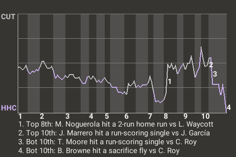 e - B. Browne pinch hit for M. Martínez in the 10th