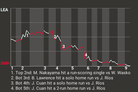 2 (11, 4th Inning off J. Ríos, 0 on, 0 outs; 5th Inning off J. Ríos, 1 on, 2 outs)