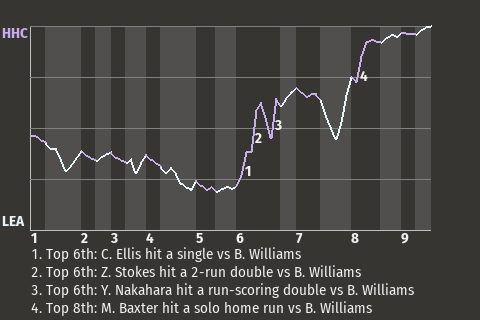 2 (5, 1st Inning off A. Bowen, 0 on, 0 outs; 9th Inning off S. Ellis, 0 on, 0 outs)