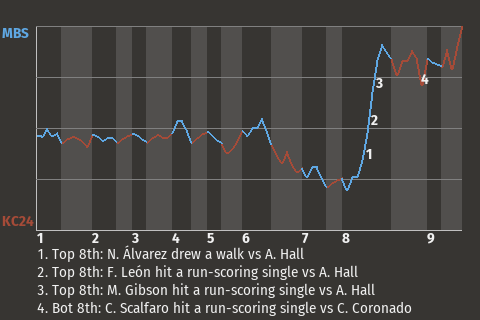 2 (8, 4th Inning off C. Díaz, 0 on, 0 outs; 6th Inning off J. Cruz, 0 on, 0 outs)
