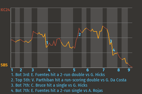 a - E. Jiménez pinch hit for B. Rush in the 9th