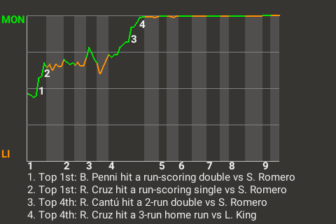 2 (4, 4th Inning off S. Romero, 2 on, 2 outs; 6th Inning off L. King, 0 on, 0 outs)