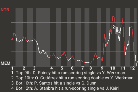 3 (4, 2nd Inning off S. Vehuny, 1 on, 0 outs; 4th Inning off S. Vehuny, 0 on, 0 outs; 9th Inning off R. Rivas, 0 on, 2 outs)