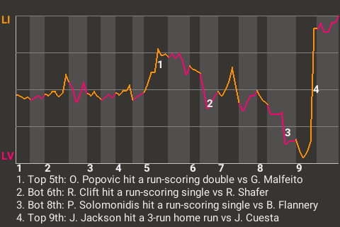 Ostoja Popovic singled in the 1st, singled in the 3rd, hit an RBI double in the 5th, singled in the 7th and singled in the 9th.