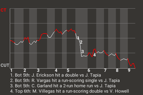 2 (13, 4th Inning off K. Hill, 0 on, 0 outs; 8th Inning off M. Pérez, 0 on, 0 outs)