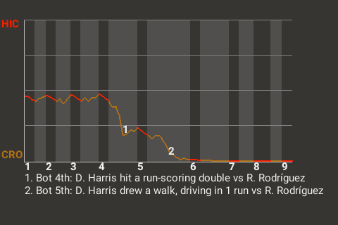 3 (8, 2nd Inning off R. Rodríguez, 0 on, 1 out; 4th Inning off R. Rodríguez, 2 on, 0 outs; 6th Inning off G. Montoya, 1 on, 1 out)