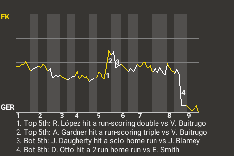 Germantown took a 4-2 lead on Dave Otto's 7th home run of the season. The 2-run home run, which Otto hit in the bottom of the eighth, left Fort Knox pitcher Eugene Smith visibly frustrated.