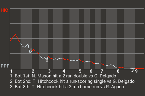 2 (15, 1st Inning off G. Delgado, 2 on, 2 outs; 7th Inning off R. Agano, 2 on, 2 outs)