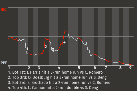 2 (8, 5th Inning off J. Morrison, 0 on, 1 out; 9th Inning off J. Martínez, 0 on, 0 outs)