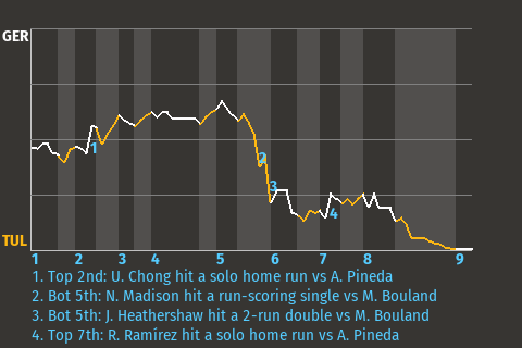 2 (6, 4th Inning off J. Lewis, 1 on, 1 out; 7th Inning off J. Lewis, 0 on, 0 outs)