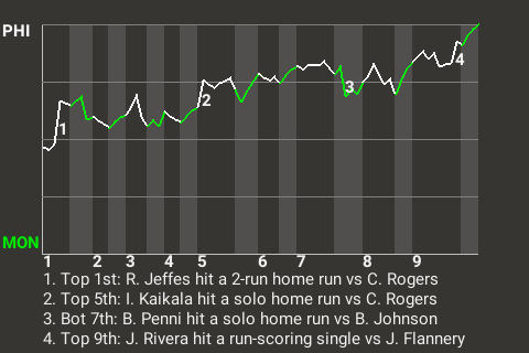 In the top of the first, Rhys Jeffes ambushed a full count fastball from Cornell Rogers and hit a 2-run home run. It gave Philadelphia a quick 2-0 lead.