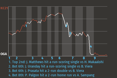 2 (6, 4th Inning off J. Abonga, 0 on, 0 outs; 5th Inning off J. Abonga, 1 on, 1 out)