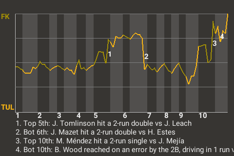 2 (12, 4th Inning off M. Rodríguez, 0 on, 0 outs; 8th Inning off J. Hilton, 0 on, 2 outs)