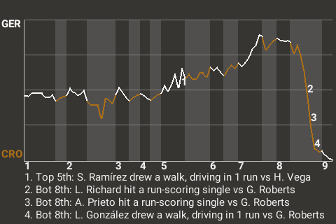 (4, 6th Inning off C. Hana, 0 on, 1 out)