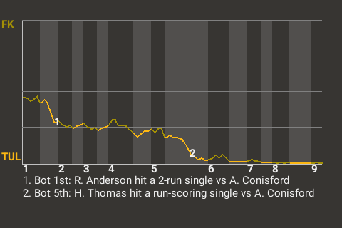 John Forbes found himself in a pressure situation in the top of the tenth. Facing Tulsa hurler Michael Elkins, the 20-year-old designated hitter hit a sacrifice fly. His 9th RBI of the season put the Flanderses on top, 6-5.