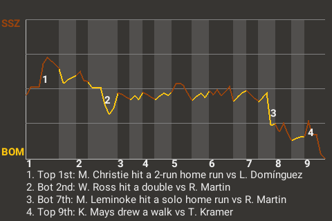 Surprise third baseman Jorge Alemán contributed a timely at-bat in the top of the sixth. With two down, he hit a fastball to right field for a run-scoring single. It was his 5th hit of the season and put the Shockers ahead, 2-0.