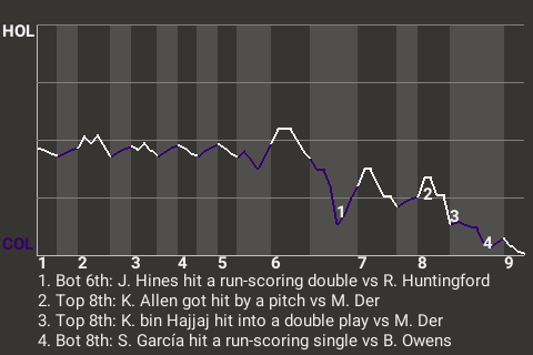 (1, 6th Inning off R. Huntingford, 2 on, 0 outs)