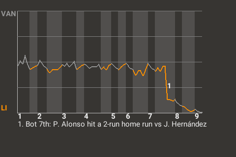Long Island took the lead, 2-0, on Pedro Alonso's 3rd home run of the season. The 2-run home run came off Vancouver pitcher Juan Hernández in the bottom of the seventh.