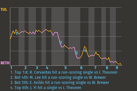 2 (20, 2nd Inning off P. Báez, 0 on, 0 outs; 5th Inning off P. Báez, 1 on, 2 outs)