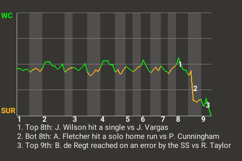 Surprise took the lead, 3-0, on Dewitt Kennedy's 1st home run of the season. The 2-run home run came off Watford City pitcher Alistair Beardsall in the bottom of the eighth.