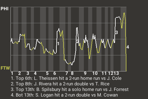 2 (3, 9th Inning off D. Hill, 0 on, 0 outs; 13th Inning off M. Cowan, 2 on, 2 outs)