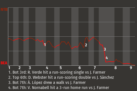 2 (5, 1st Inning off P. González, 0 on, 1 out; 6th Inning off J. Morales, 1 on, 2 outs)