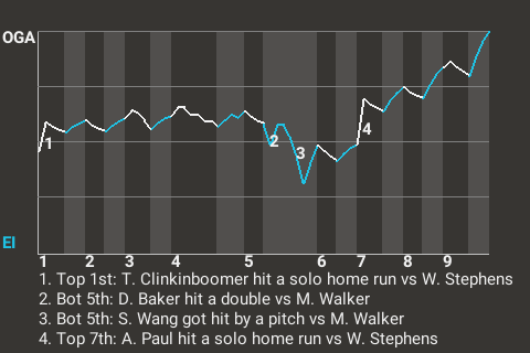 3 (4, 2nd Inning off P. Andrade, 0 on, 0 outs; 3rd Inning off P. Andrade, 2 on, 1 out; 5th Inning off Z. Zhu, 1 on, 2 outs)