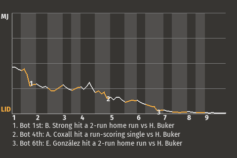2 (2, 3rd Inning off E. Chávez, 1 on, 1 out; 6th Inning off J. Sánchez, 1 on, 2 outs)
