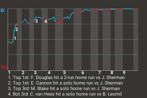 Greg Jones, who is tied for 4th in the SA- with a .333 batting average, chipped in a solo home run for Bompton in the top of the seventh. For the game, the shortstop had 3 hits in 5 at-bats with 1 home run, 2 singles, 1 run scored, and 1 run batted in.