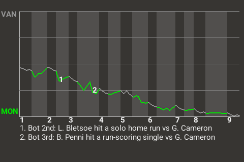 Hinkamp picked up the win. He's now 2-1, after putting the Vancouver offense in the deep freeze. Over 7.2 innings, he allowed no earned runs on 3 hits.